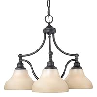 (More customer reviews)The chandelier arrived quickly, in fact a day earlier than expected. The description on Amazon was of a Oil rubbed bronze chandelier with white alabaster glass. The Chandelier, in fact comes with Sepia Tinted glass shades and white alabaster shades are not available for this chandelier.
