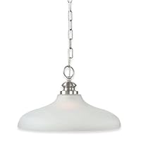 RP700DW/1-12 Finish: Brushed Steel, Bulb Type: Incandescent Pictured in brushed steelFeatures: -One light down pendant. -Prescott collection. -Available in brushed steel or oil rubbed bronze finish. -Sepia tinted glass in silhouette. -ISTA 3A certified. -Energy star. -Eco friendly. -Assembly required. Specifications: -Accommodates (1) medium base or CFL bulb. -Manufacturer provides one year warranty for indoor items and three years warranty for outdoor items. -Overall dimensions: 9.5'' H x 16'' W.