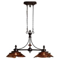 Featuring a frame of hand-wrought metal curling around heavy handmade toffee art glass, this resplendent island chandelier is a captivating decor accent for your kitchen. From Uttermost.